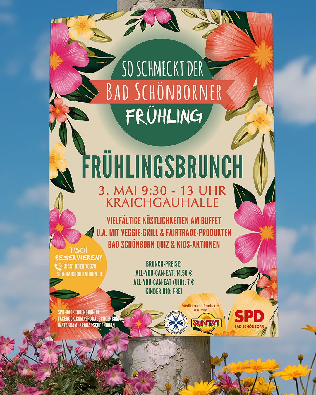 Ein Tisch voller guter Dinge. Der Duft von frischem Kaffee und warmen Brötchen. Lachen, Gespräche und einfach mal Zeit füreinander. Genau das macht unseren Frühlingsbrunch in Bad Schönborn so besonders. Freu dich auf ein liebevoll vorbereitetes Frühstücksbuffet, unseren Veggie-Grill, frühlingshafte Atmosphäre, kleine Aktionen wie das Quiz und ein entspanntes Miteinander – drinnen und bei schönem Wetter auch draußen auf der Terrasse