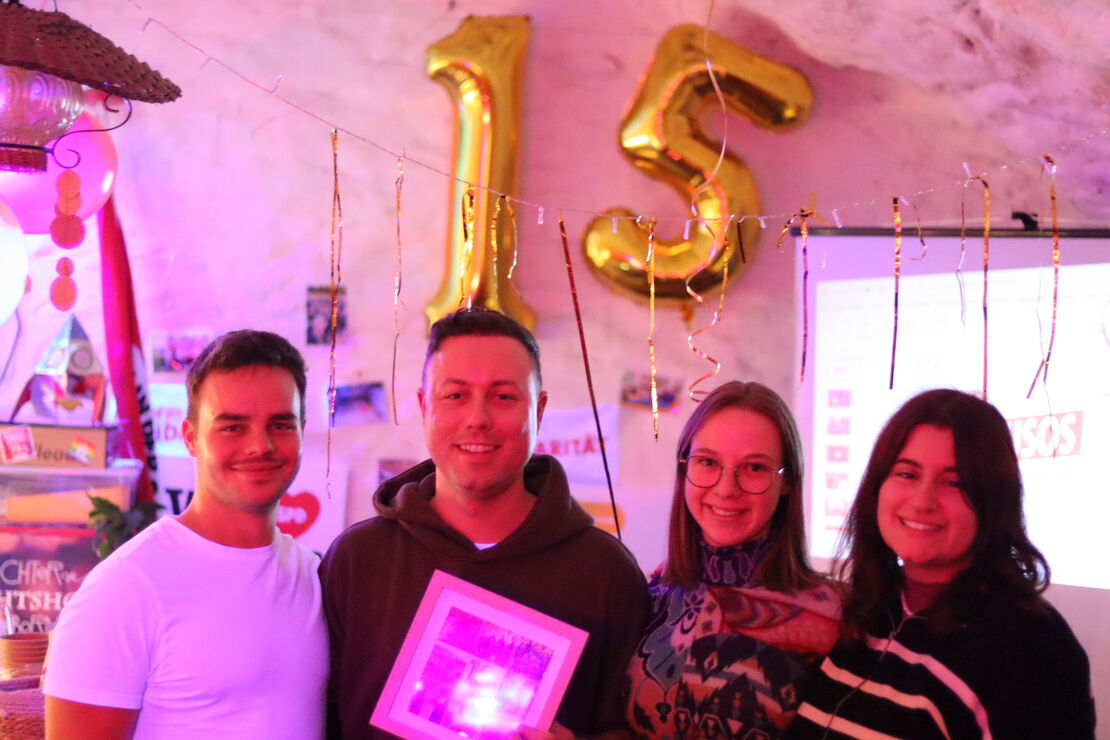 Im Anschluss feierten die Jusos Bad Schönborn ihr 15-jähriges Bestehen. Die eigentliche Gründung der Jusos war am 20.5.2009 im Restaurant „Adler“ in Langenbrücken. Dabei wurde auch der erste Vorstand gewürdigt, mit Dennis Eidner als Gründungsvorsitzendem, Stefan Rietbrock als erstem Stellvertreter und Pressesprecher, Christoph Becker als zweitem Stellvertreter und Nico Klewe als Kassier. Der Vorstand wurde durch Michelle Eidner im Medienressort und ein Quartett aus Beisitzerinnen und Beisitzern, namentlich Nina Hillerich, Nadia Roloff, Thomas Rietbrock und Jonathan Fröhlich ergänzt. Ein Juso-Quiz und Fotos der letzten 15 Jahre gaben den Gästen einen Einblick in die Geschichte der Jusos Bad Schönborn. Drinks, Karaoke und selbstgemachte Waffeln rundeten die Feier ab.