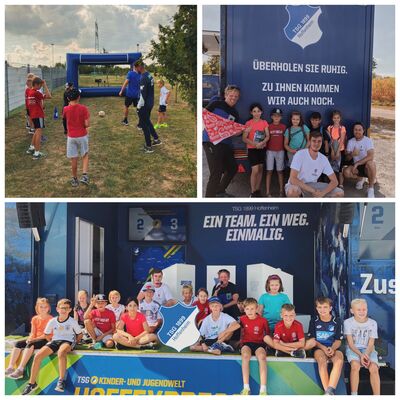 Die SPD Bad Schönborn brachte beim diesjährigen Ferienprogramm den Hoffexpress nach Bad Schönborn. Der Fanbus des TSG Hoffenheims war mit zahlreichen Modulen vor Ort, die von den 20 Kindern begeistert genutzt wurden. Tischkicker, Reaktionswand und Schussgeschwindigkeits-Messanlage waren ebenso gefragt wie die Torwände oder die große Hüpfburg. Viel Freude bereitete es, den Ball ins Netz zu kicken. Das Ganze wurde automatisch gemessen und an einer Uhr sah man, wie schnell das runde Leder war. Geschicklichkeit war an der Reaktionswand gefragt. An der Wand leuchteten Farben auf, so schnell wie möglich mussten diese berührt werden. Auch hier wurde die Zeit gemessen. Beim großen Fußballspiel gab es außerdem Tipps von Sportstudierenden des TSG-Hoffenheims. Das Quiz-Finale wurde dann am Hoffeexpress mit den Kategorien Bilderrätsel, Videosequenzen und Fragen rund um Fußball, Ernährung und Allgemeinwissen gespielt. Dank geht an alle Teilnehmer*innen, Helfer*innen und dem TSG-Team.