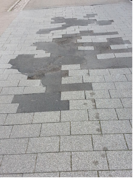In der Badstraße wurden defekte Steine durch Asphalt ausgebessert, was nicht nur schlecht aussieht, sondern auch primitiv und stümperhaft wirkt. Dies ist auch kein Renommee für einen Kurort.