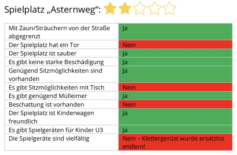 - Spielgerät (Klettergerüst) wurde ersatzlos entfernt ohne Information