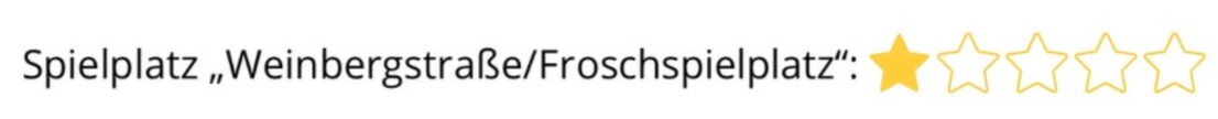 Dieser Spielplatz wurde leider geschlossen! Wir finden es sehr schade, dass dieser so beliebte Spielplatz abgebaut wird. Viele Eltern und Kinder haben uns erzählt, wie sehr sie diesen Spielplatz vermissen. Der Spielplatz wurde viel und gerne genutzt. Beliebt war er auch, da die Spielgeräte aus natürlichen Materialien bestanden und die Fantasie der Kinder angeregt wurde.